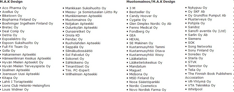 Yhteistyökumppaneita vuosien varrelta